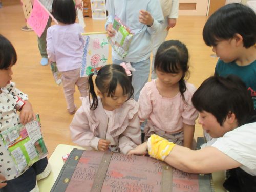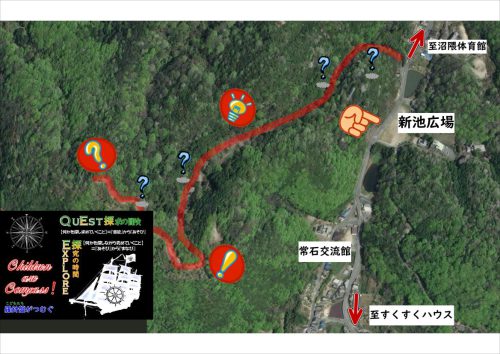 眺洋山に親子でのぼっていただく予定でしたが、あいにくの空模様で、すくすくハウス園内での親子ウォークラリーを楽しみました。
