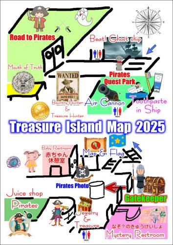 雨用に作られた Treasure Island Map をもとに親子でなぞ解きをしていきます。