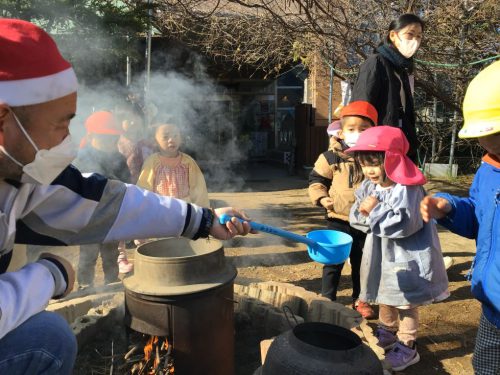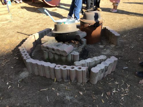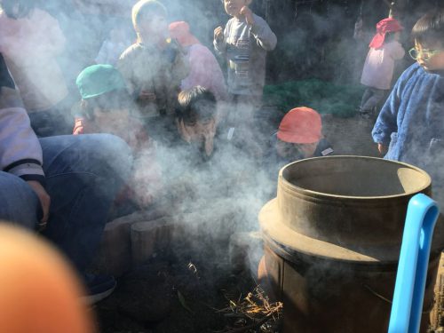 北風が冷たく感じられる季節、すくすくハウスの園庭にかまどが出現。