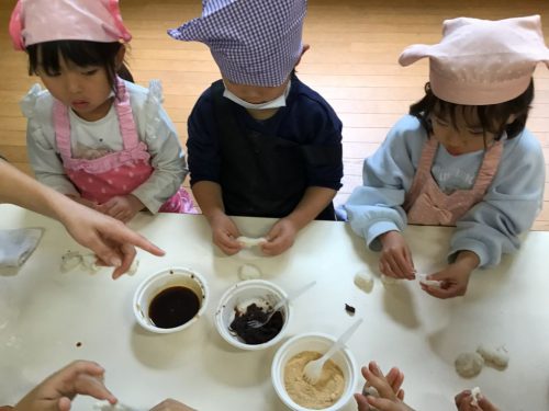 つきたてのお餅を、砂糖醤油・あんこ・きなこの味でセレクトしました。