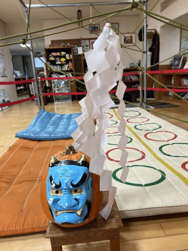 『サイのかわら~積み木くずし』コーナーは、文字通り、「賽の河原」で鬼がいます。鬼は学童さんが作ってくれました。